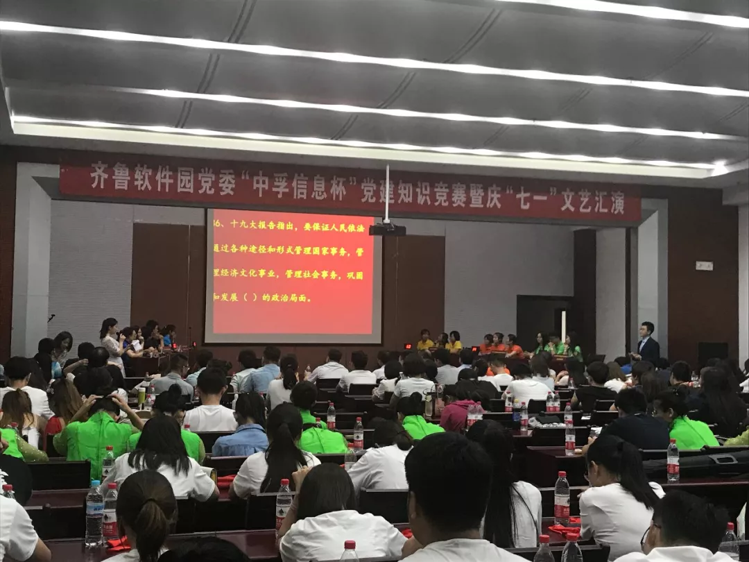 为庆祝中国共产党成立97周年,深入推进党的十九大精神学习,2018年6月30日下午,开云官方入口登录党总支响应齐鲁软件园党委号召,组织并参与了“开云官方入口登录杯”党建知识竞赛暨庆“七一”文艺汇演活动,为党的97岁华诞献礼。园区企业联合党委下属企业党组织成员、党建指导员等200余人参加了此次活动。